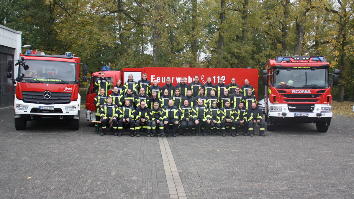 Aus Werne beteiligen sich insgesamt 30 Kameradinnen und Kameraden, davon 19 Kamerad*innen aus dem Löschzug 1, 3 Kameraden aus der Löschgruppe 2, 7 Kameraden aus dem Löschzug 3 und 1 Kamerad aus der Löschgruppe 4.
