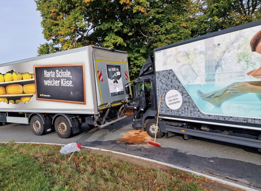 TH_1 - LZ1 - VU LKW auf LKW im Kreisverkehr, 1 Verletzter, auslaufende Betriebsstoffe