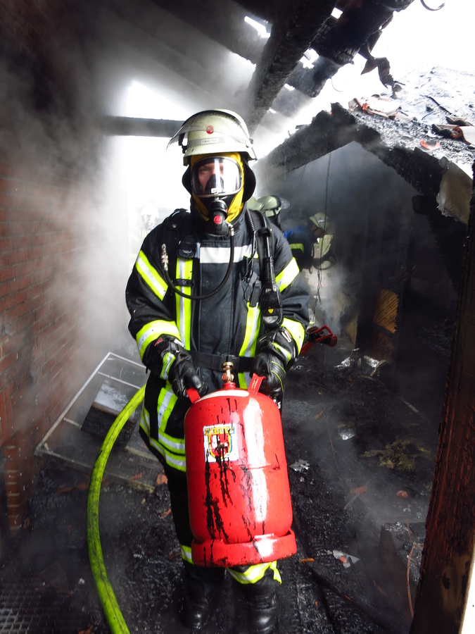 Gartenhausbrand droht auf Gebäude überzugreifen