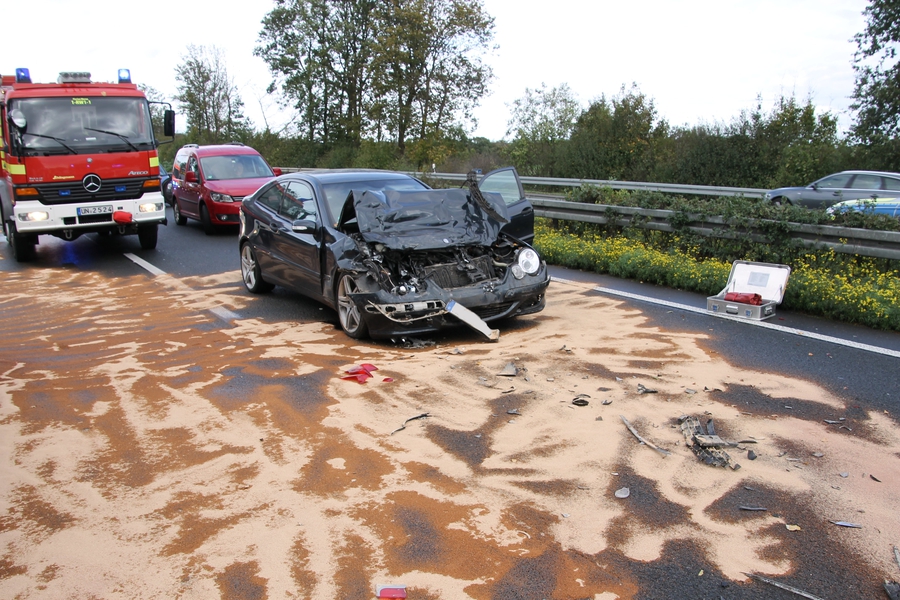 TH_2 - LZ1 - VU 6 PKW, 1 verletzte Person, 1 PKW qualmt, auslaufende Medien