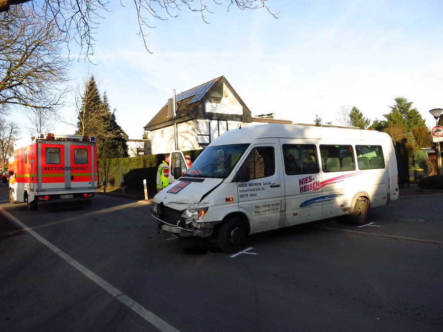 Unklarer Verkehrsunfall zwischen Schulbus und PKW
