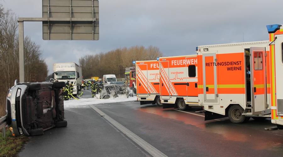 Acht Verletzte und brennender PKW