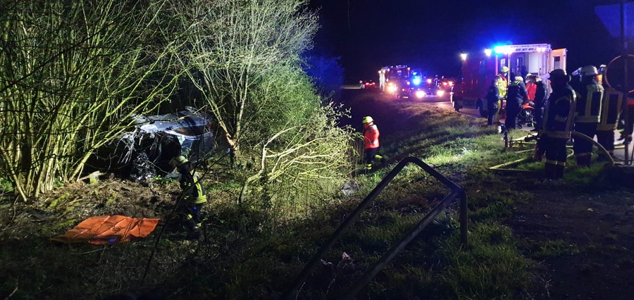 TH_PERSON_KLEMMT - LZ1 - VU Fahrzeug liegt auf Seite / 1 Person