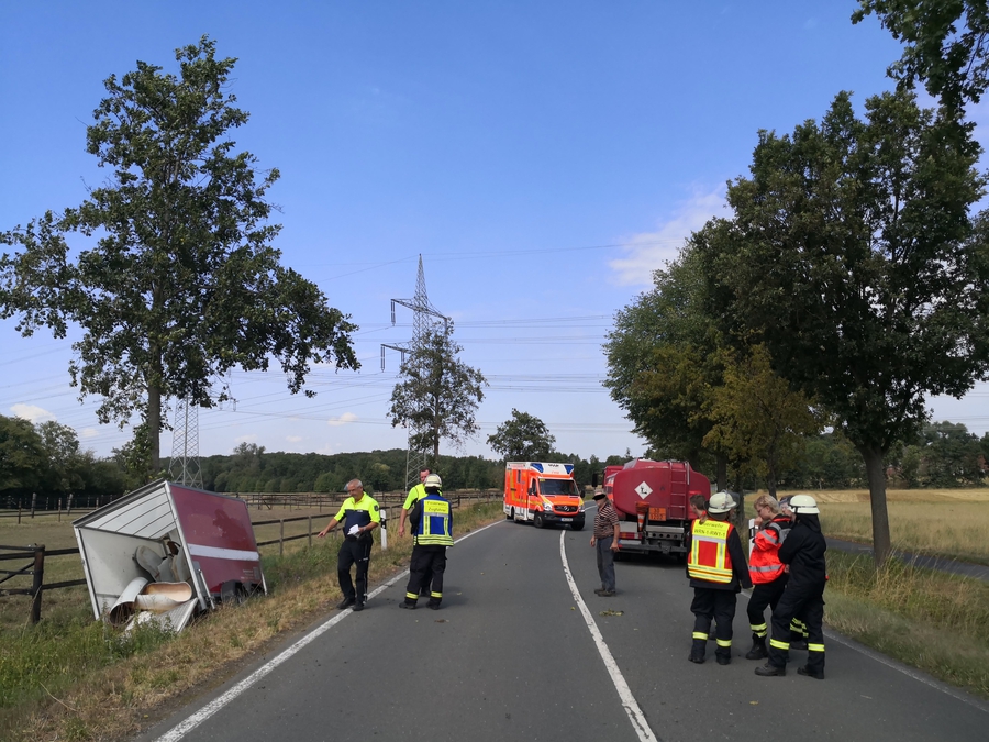 TH_ABC_1 - LZ1 - LG2 - Anhänger mit Öl losgerissen großer Anhänger liegt im Graben Heizöl gelagert Leck geschlagen