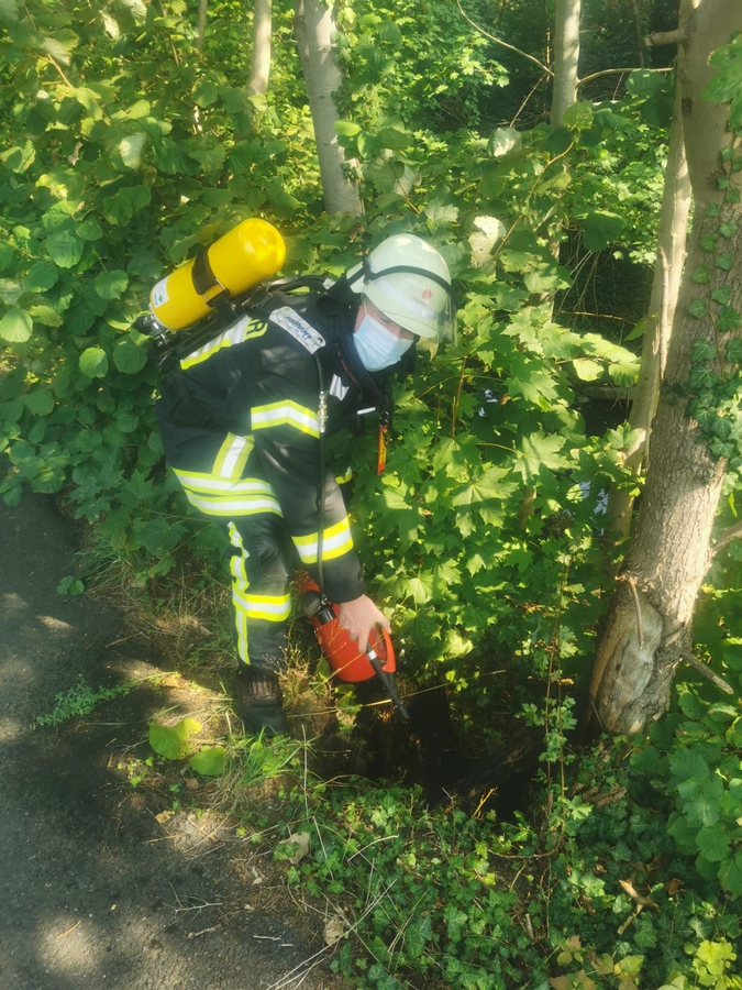 FEUER_1 - LZ1 - Brennt Baumstumpf am Eingang Solebad