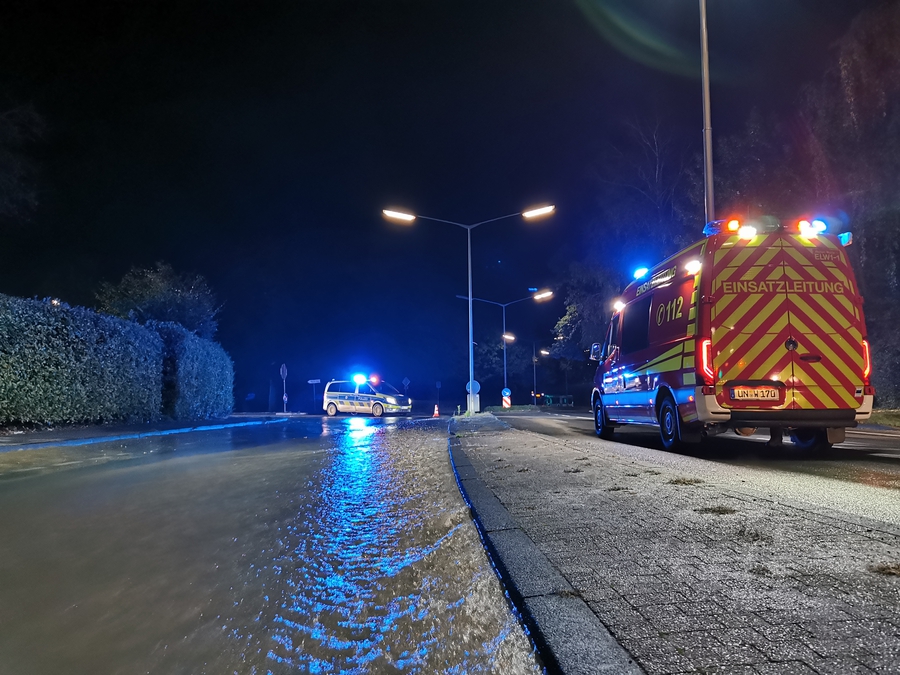 TH_1 - LZ1 - Vermutlich Wasserrohrbruch, massiver Wasseraustritt aus der Straße, ganze Straße unter Wasser, Pol vor Ort