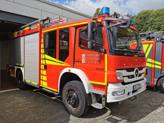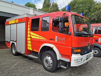 | Zusatzausrüstung | - Gefahrgutausrüstung Typ1 nach ehemaliger NRW Norm mit vier CSA Anzügen, vier Pressluftatmer - Rollwagen: Strom/Licht, Wasserförderung, Schaummittel, Ölspur groß mit Bindemittelstreugerät (Typ Öl-Tiger), Atemschutz - max. 1600m B-Schlauch beidseitig nach hinten während der Fahrt verlegbar |